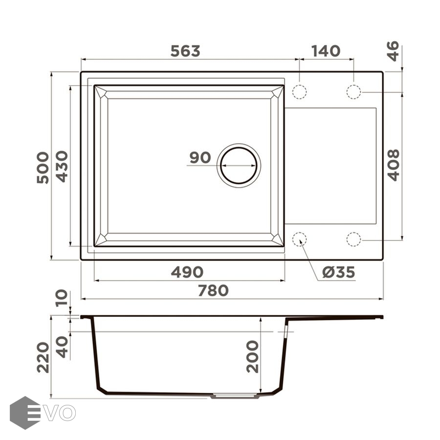 • Размер мойки: 780х500