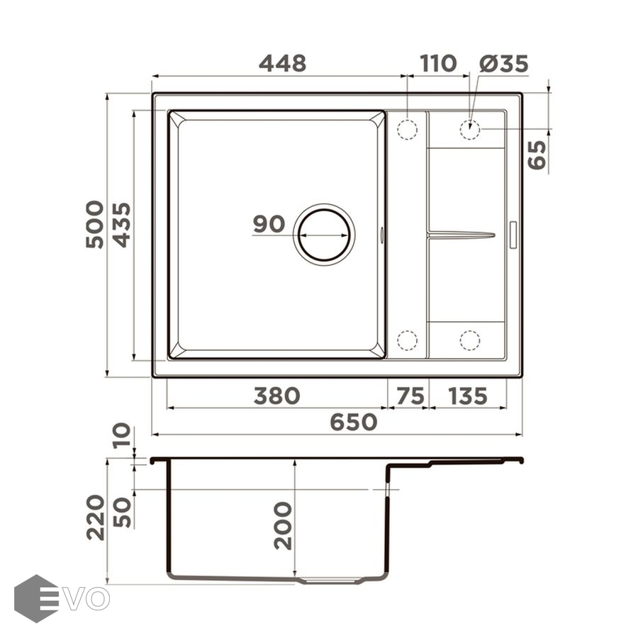 - Размер мойки: 650x500