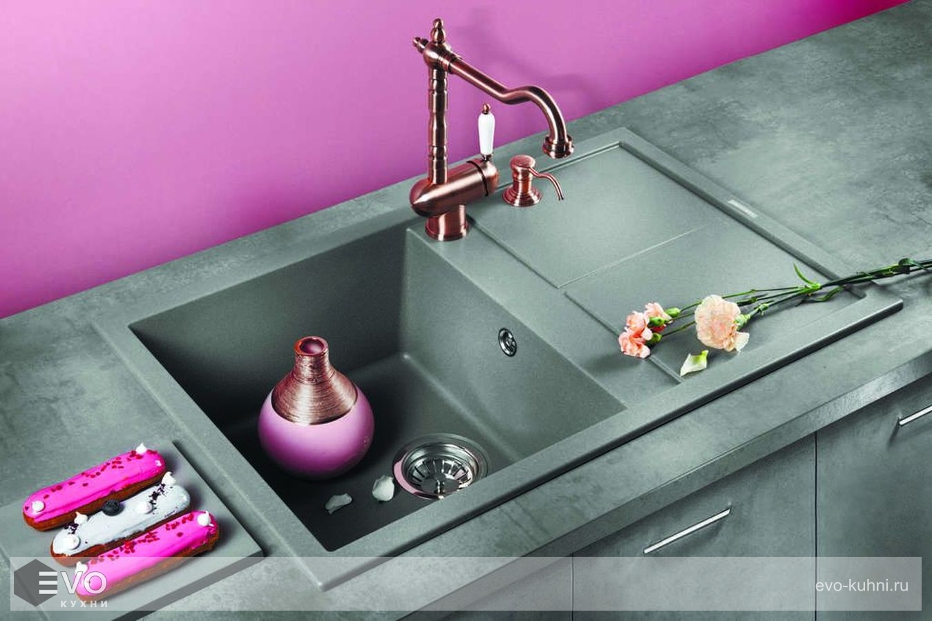 TETOGRANIT® — это связь гранита с акриловой смолой, которая выявляет лучшие качества гранита: выдерживает высокие температуры и удары. При изготовлении таких моек применяется специальный способ окрашивания частиц гранита: пигмент не только наносится на их поверхность, но и проникает во внутренние структуры камня благодаря запеканию при температуре выше 700 градусов.