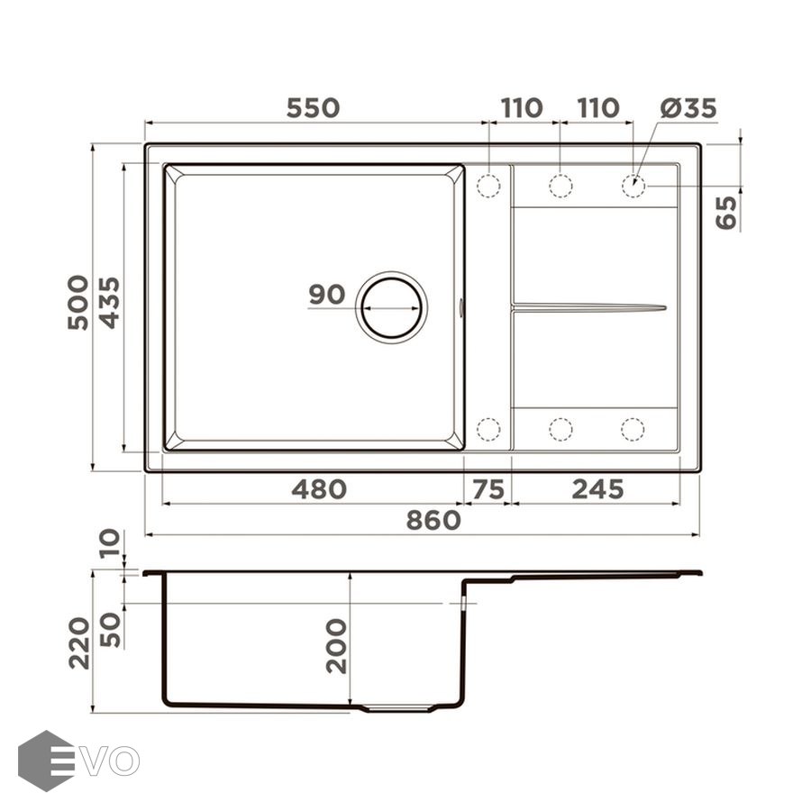 • Размер мойки: 860x500