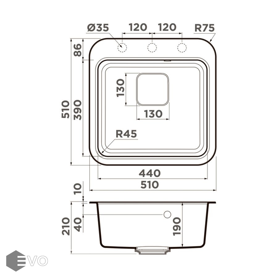 • Размер мойки: 510x510