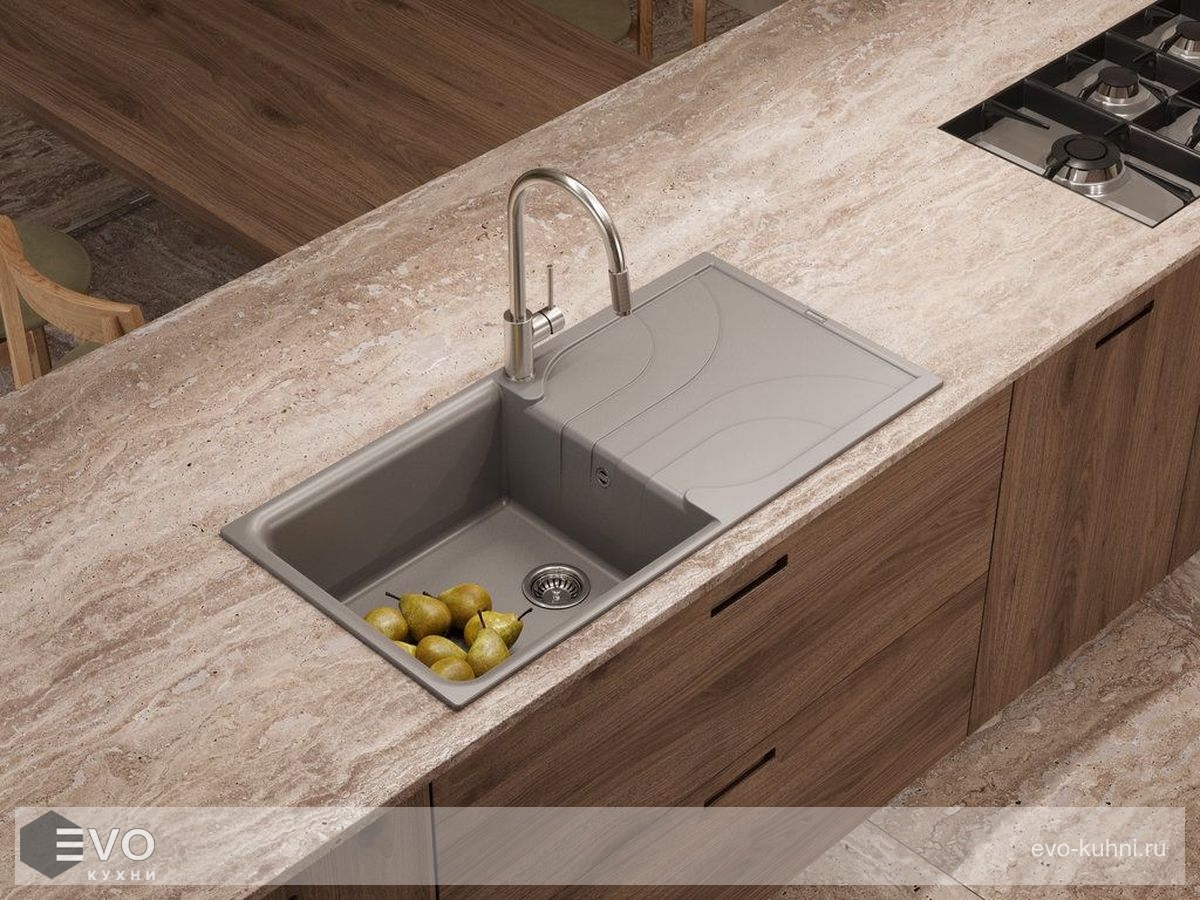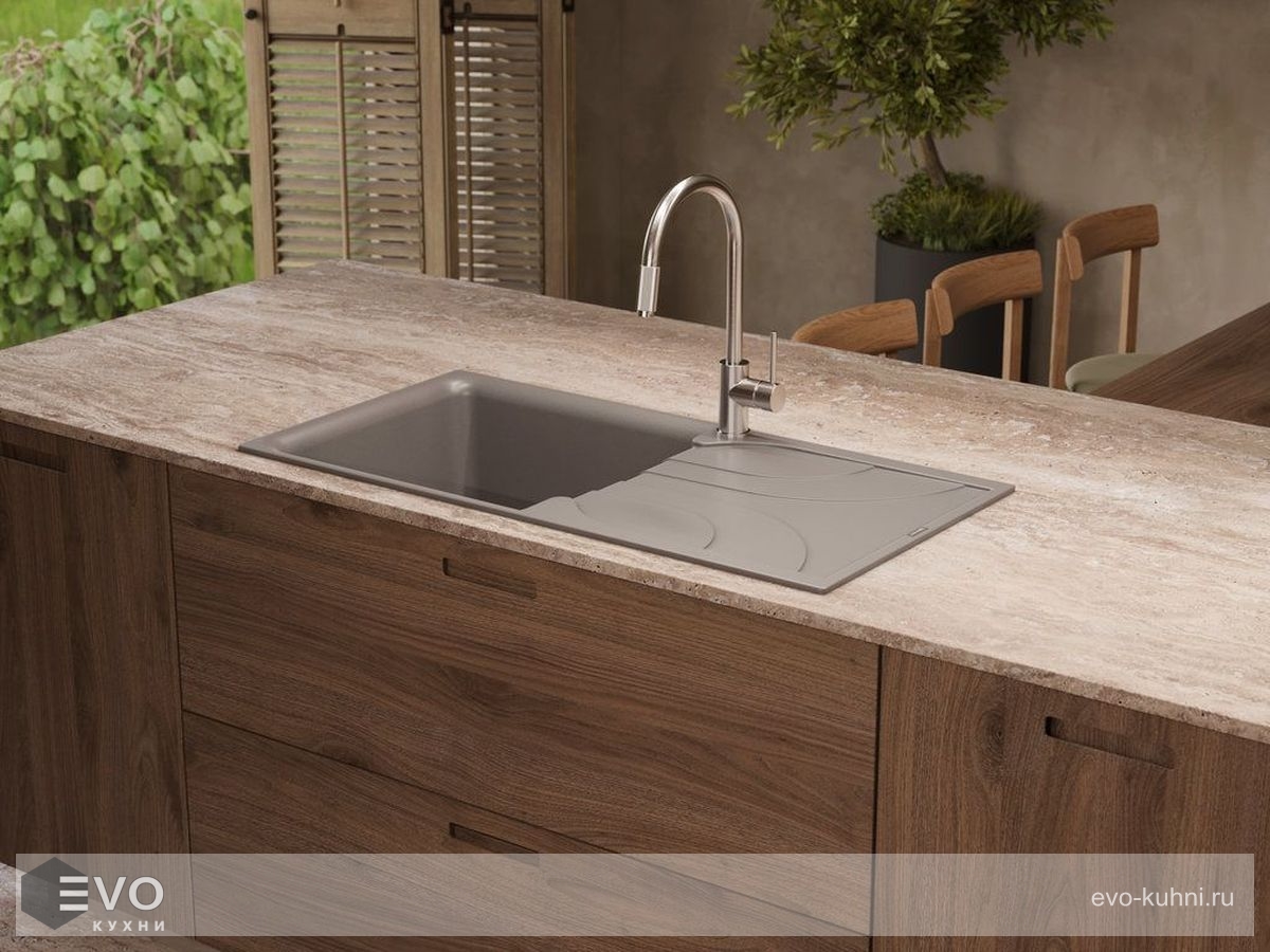Стильная мойка из TETOGRANIT имеет функциональное крыло с выпуклыми лучиками, которые предназначены для легкого стекания воды в чашу.
