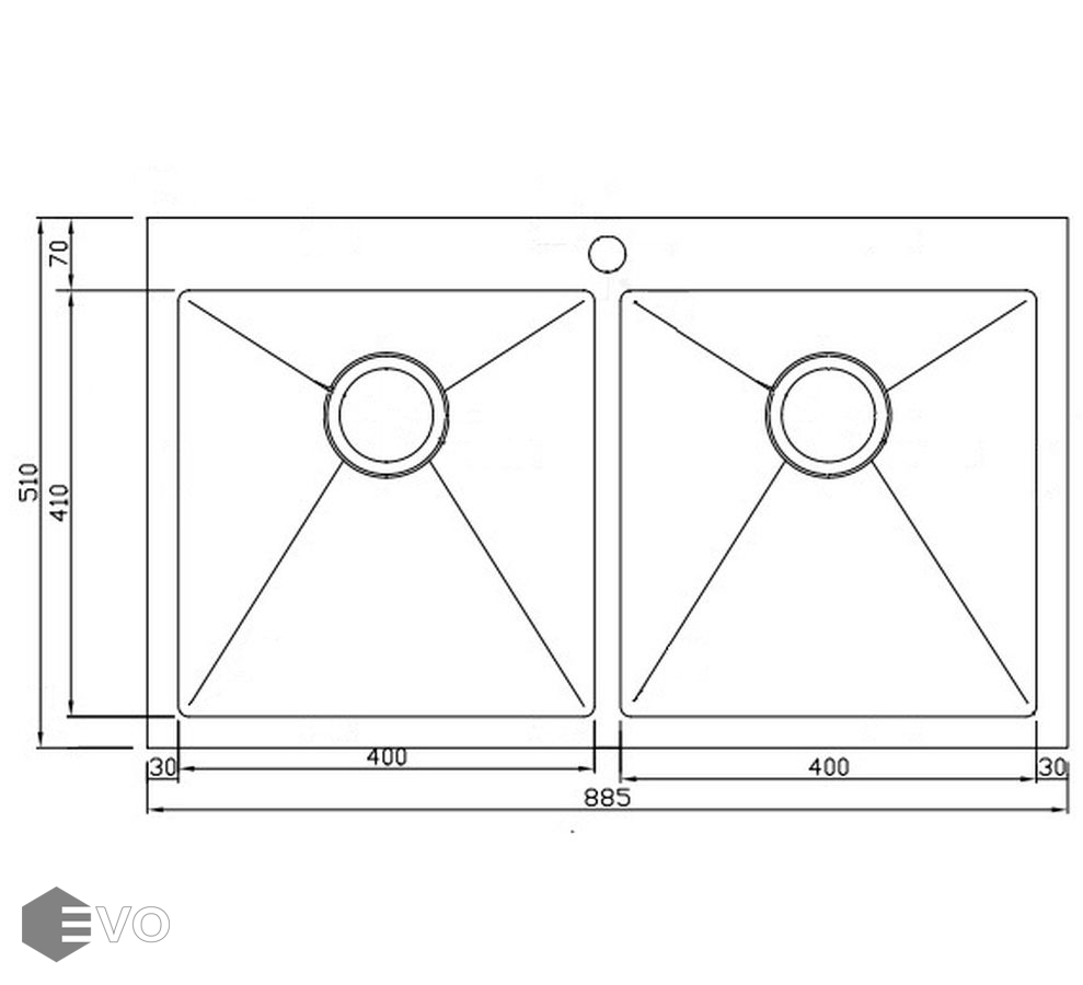 - Ширина мойки: 510