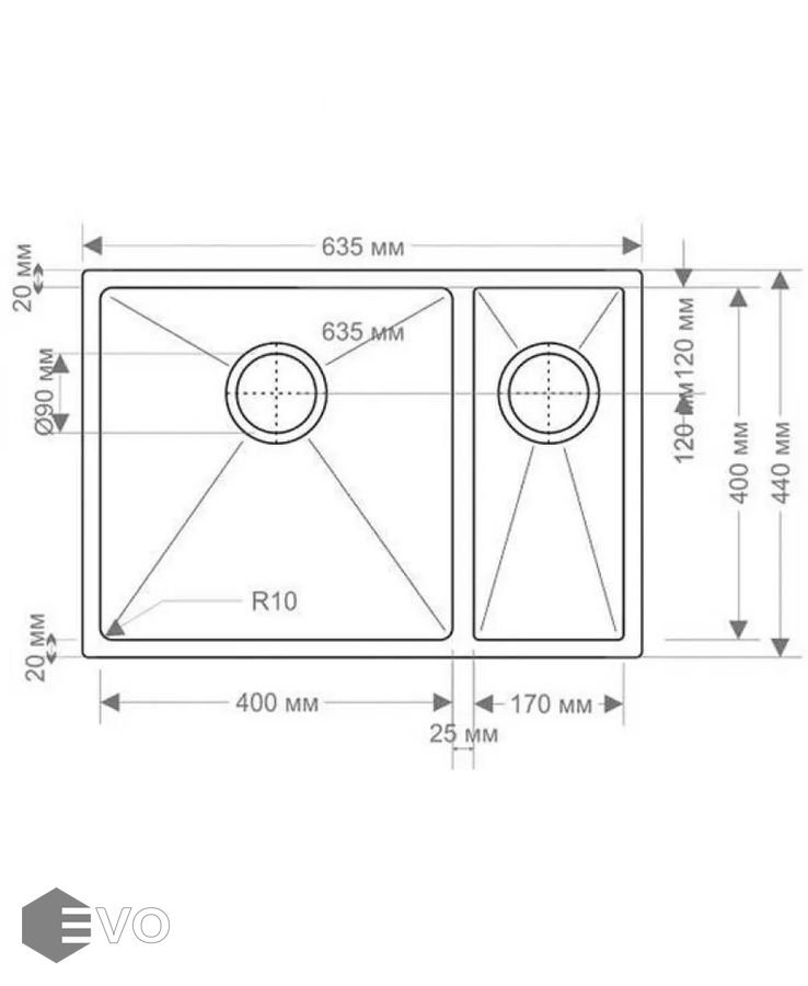 - Толщина материала мойки: 1.2 мм