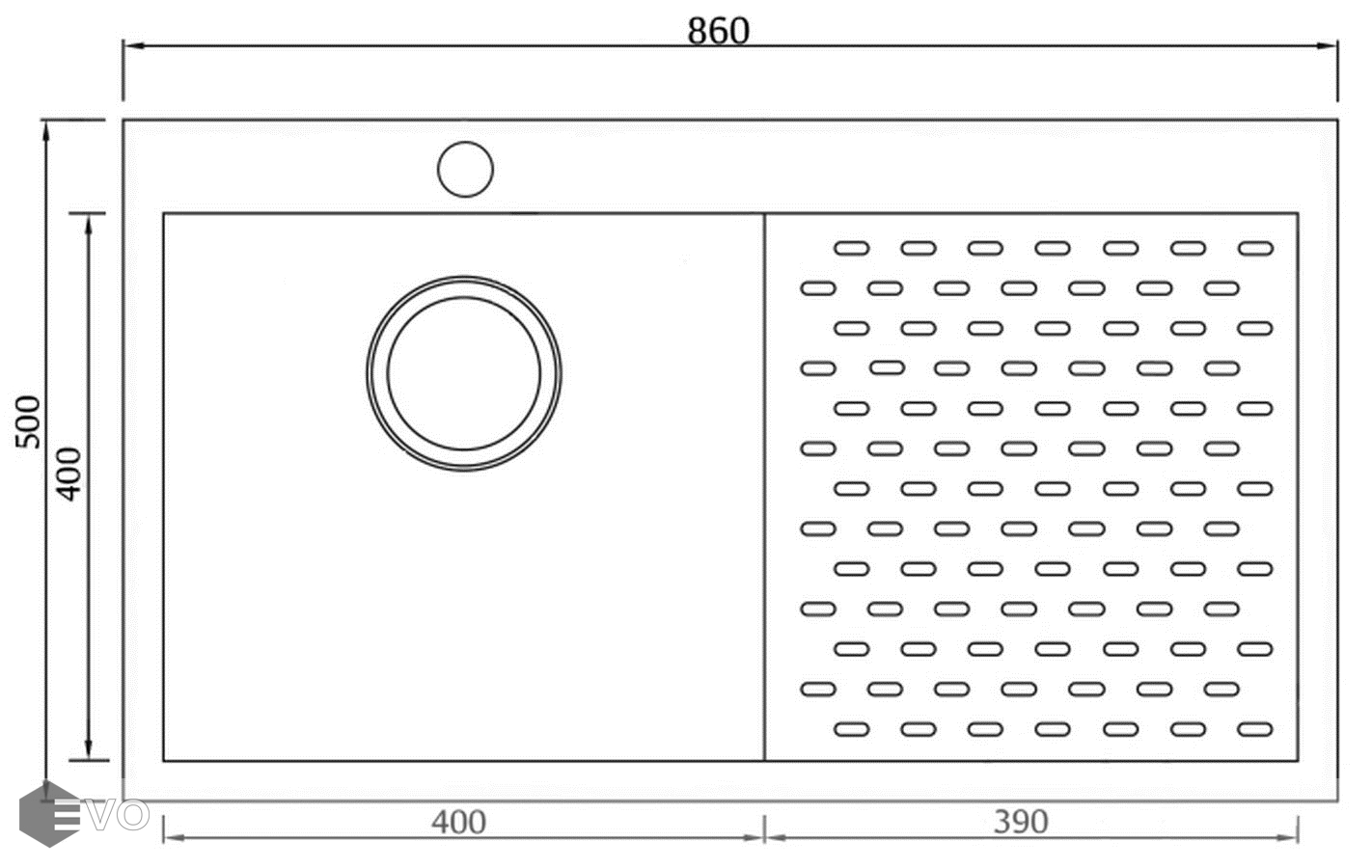 - Длина мойки: 860