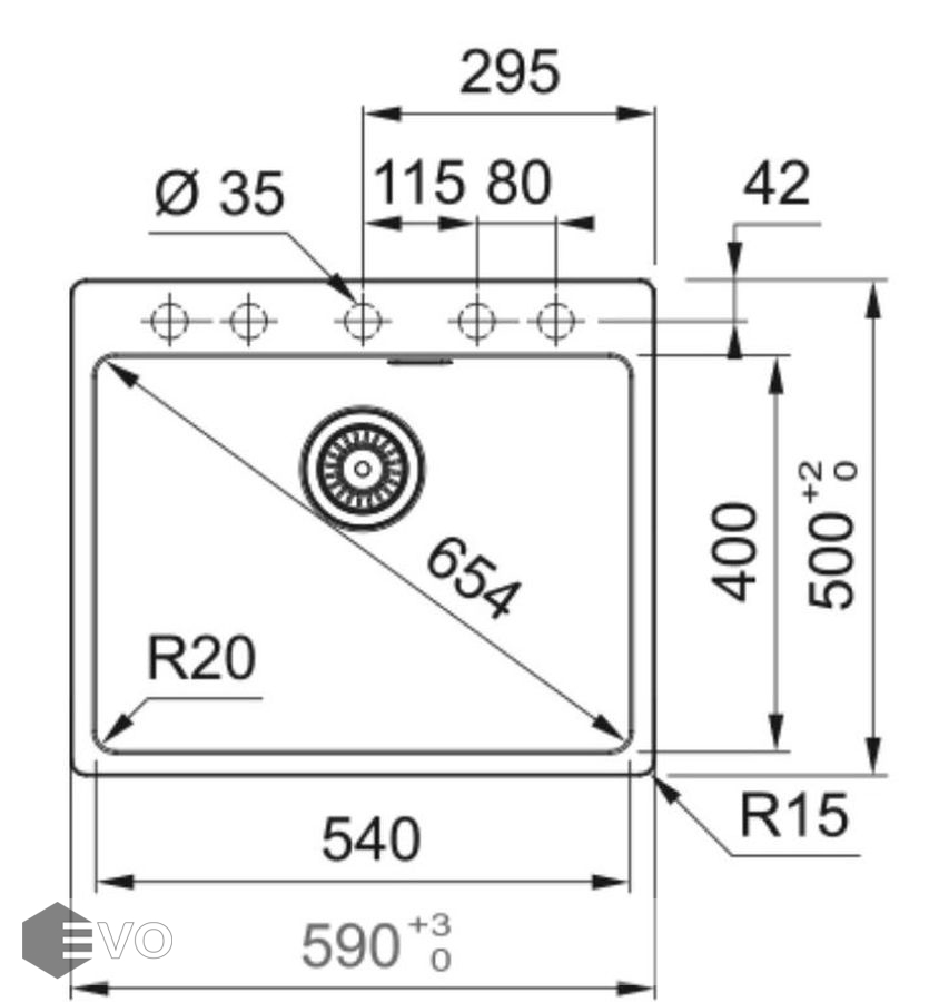 - Размер мойки: 590x500 мм