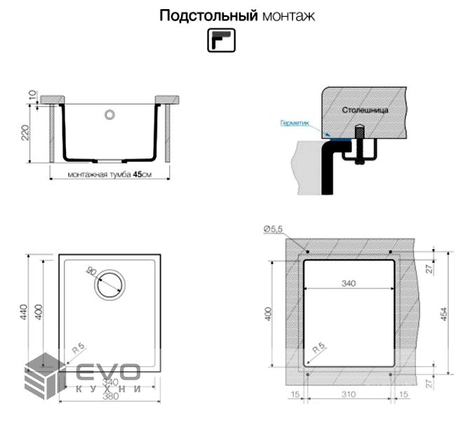 | Тип монтажа | Под столешницу |