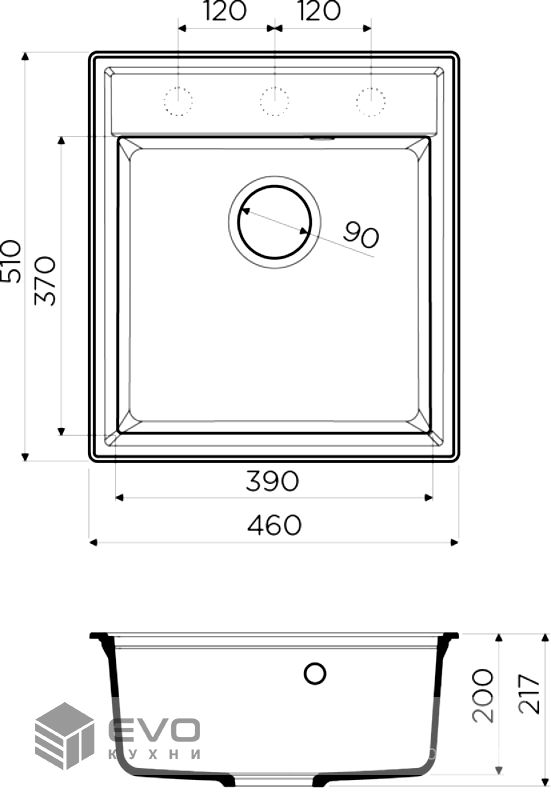 | Размер мойки | 460x510 |