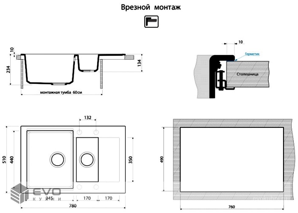 Размер мойки 780x510