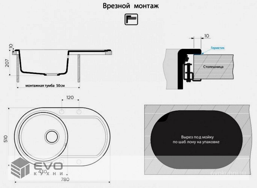 | Размер мойки | 780x510 |