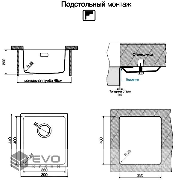 • Мойка для подстольного монтажа