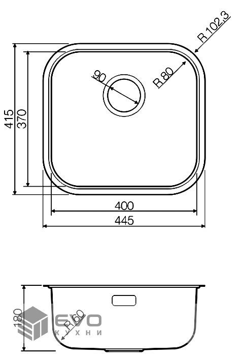 | Размер мойки | 415х445 |