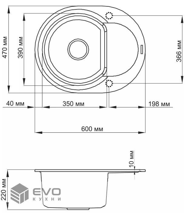 | Размер мойки | 600х470 |