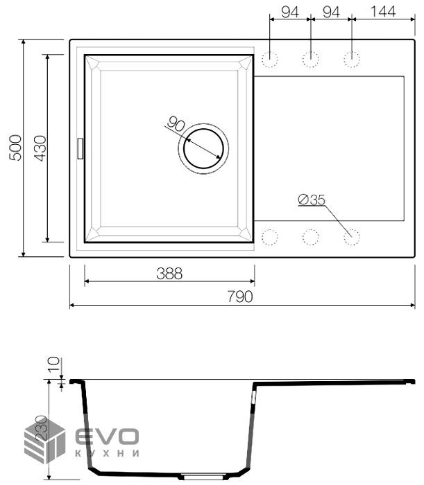 | Размер мойки | 790х500 |