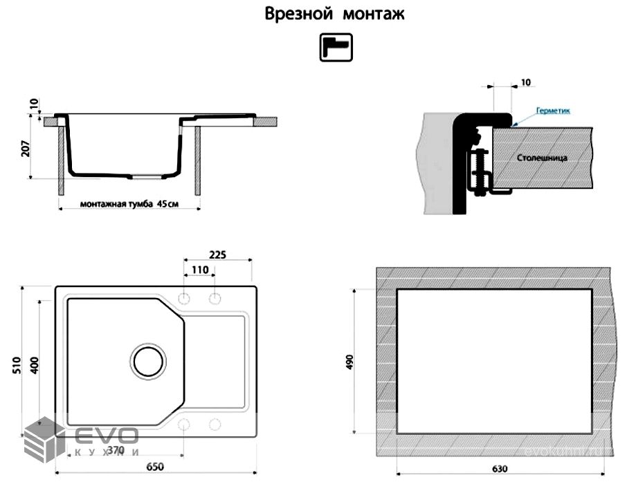 | Размер мойки | 650x510 |