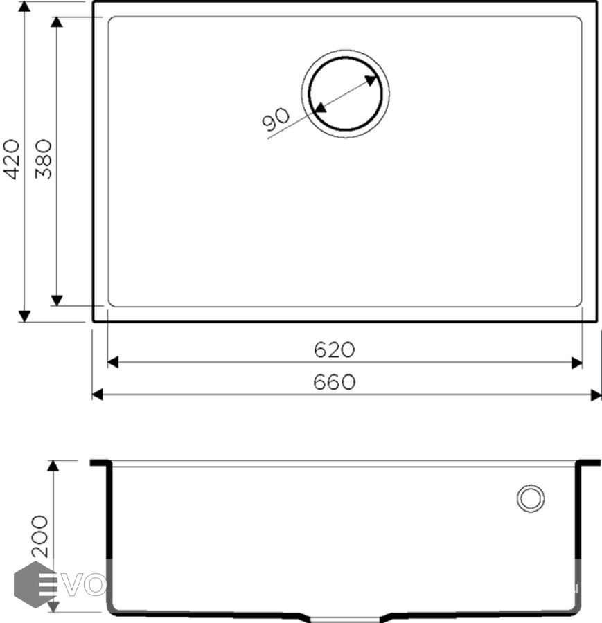 - Размер мойки, мм: 420х660
