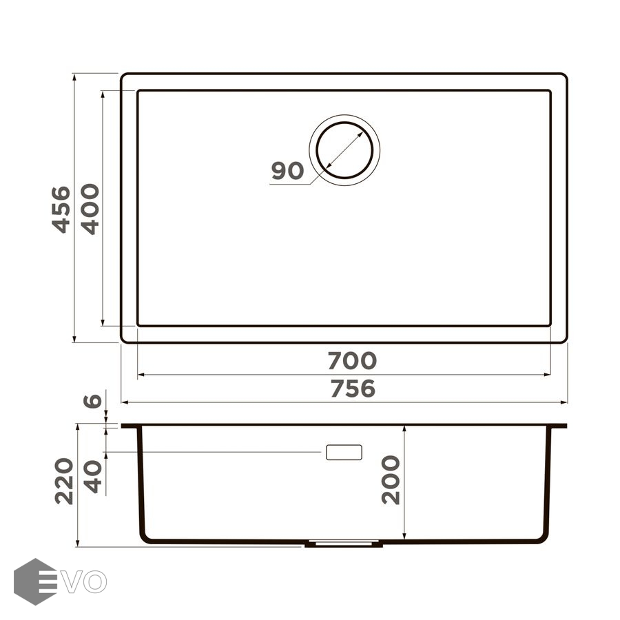 - Размер мойки, мм: 456х756