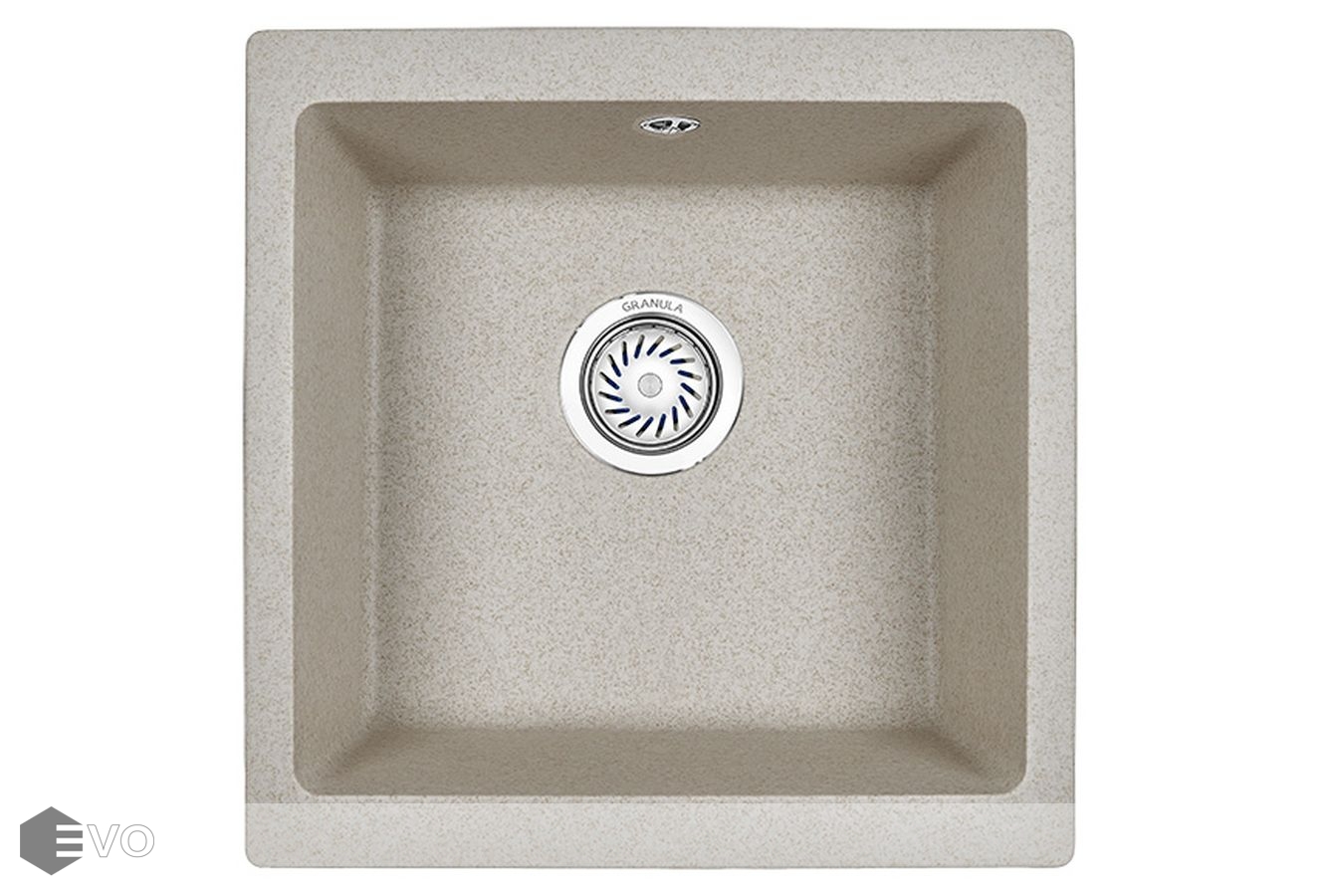 Универсальная мойка квадратной формы, изготовленная из кварцевого материала.