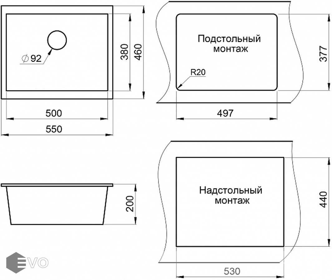 | Установка: | Врезная Интегрированная (под столешницу) |