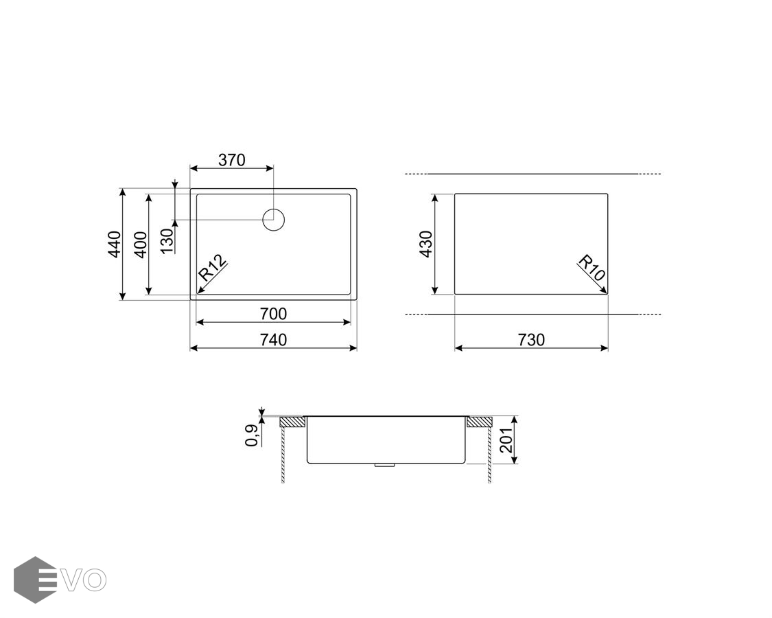 - Размер выреза, установка под столешницу (мм): 700х400 мм