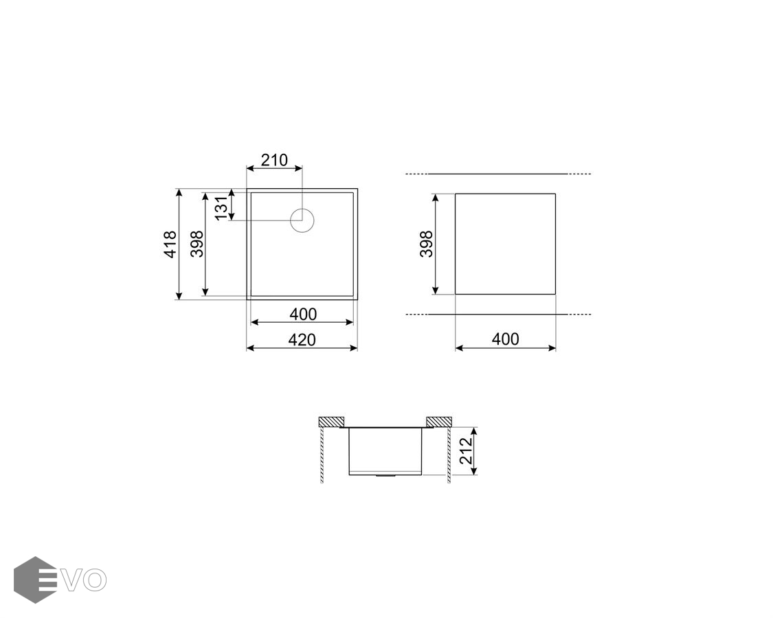 - Размер выреза, установка под столешницу (мм): 398х400