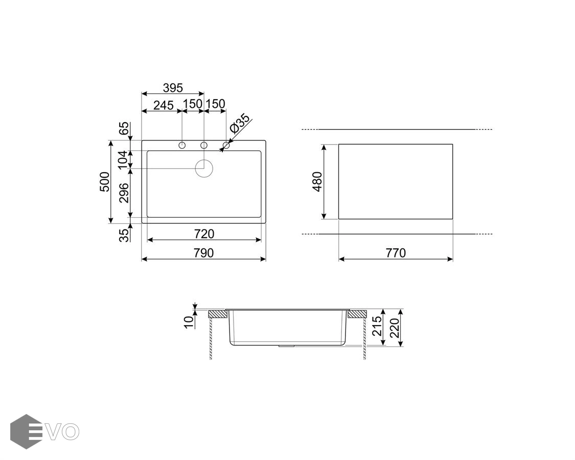 • Аксессуары для монтажа в комплекте: Корзинчатый вентиль, Сифон с возможностью подключение посудомоечной машины, Компактный сифон с возможностью подключения посудомоечной машины, Фиксирующие зажимы, Уплотнительная лента, Предварительно установленная уплотнительная лента