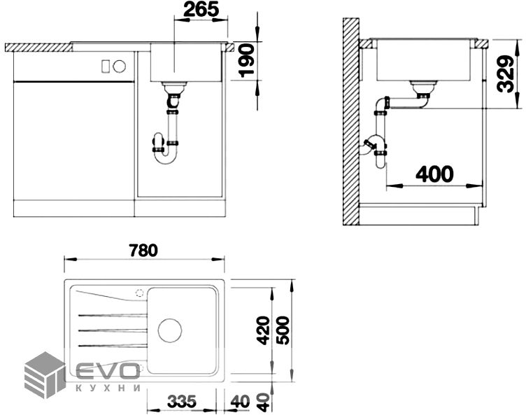 Мойка оборачиваемая Установка чаши возможна слева или справа.