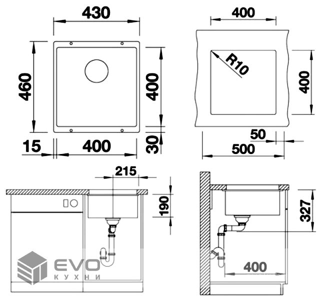 | Под столешницу | Мойка устанавливается под столешницу в предварительно подготовленный вырез. |
