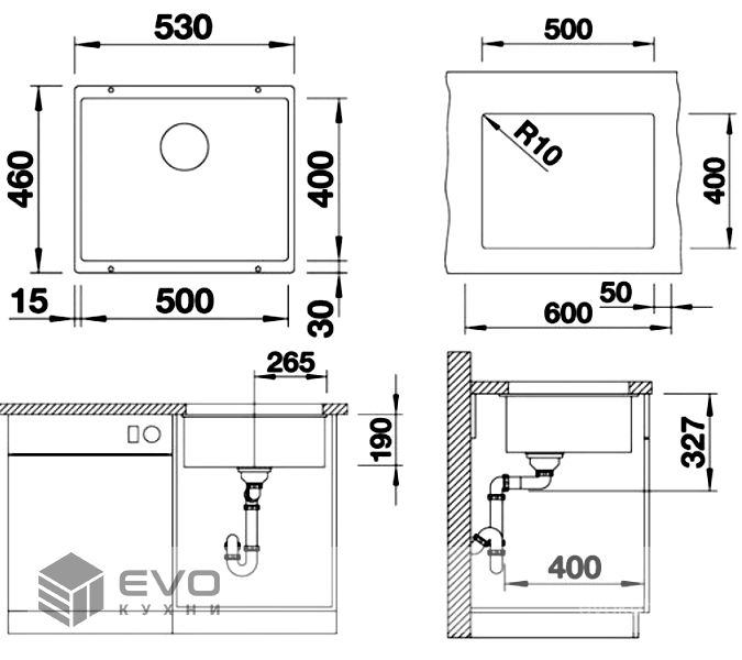Под столешницу Мойка устанавливается под столешницу в предварительно подготовленный вырез.