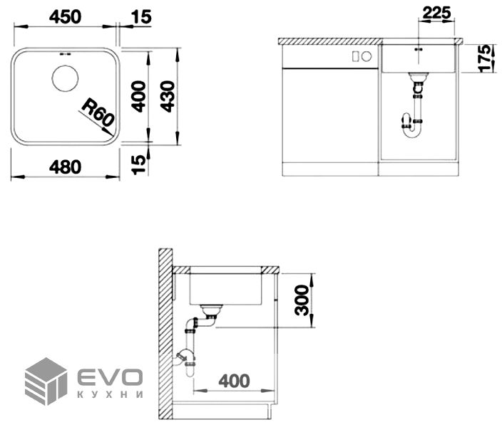| Под столешницу | Мойка устанавливается под столешницу в предварительно подготовленный вырез. |
