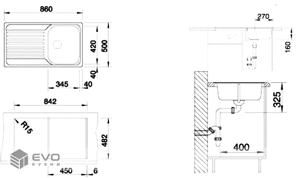 | Размер мойки | |