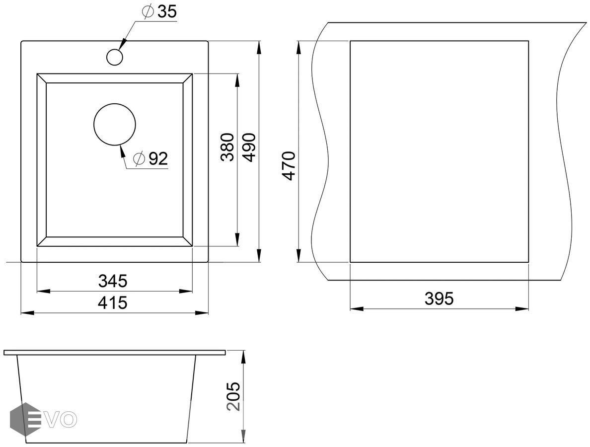 - Форма мойки: прямоугольная