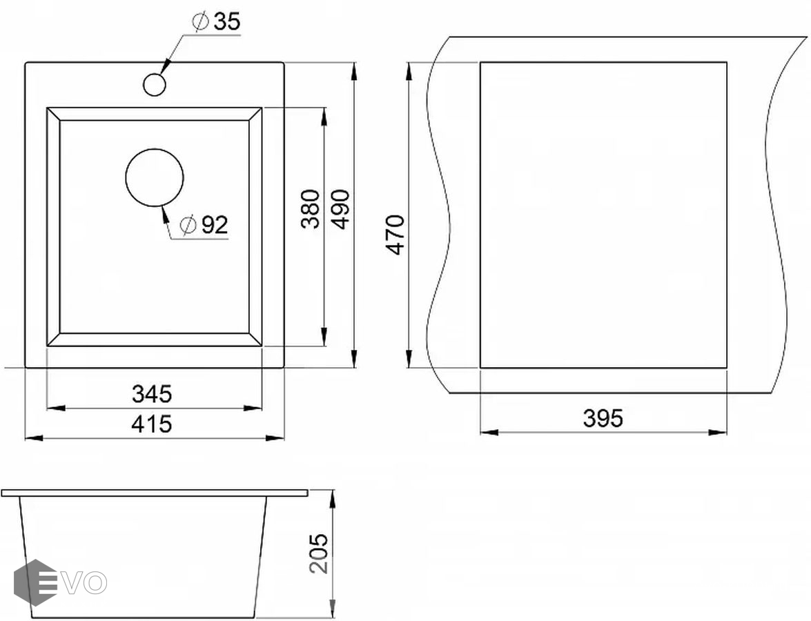 - Форма мойки: прямоугольная