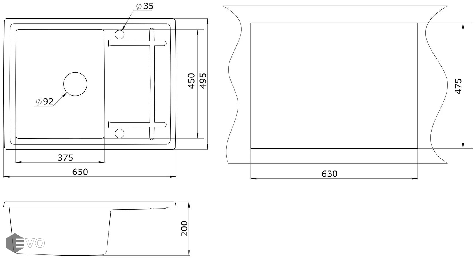 Мойка Granula GR-6501 оборачиваемая ШВАРЦ