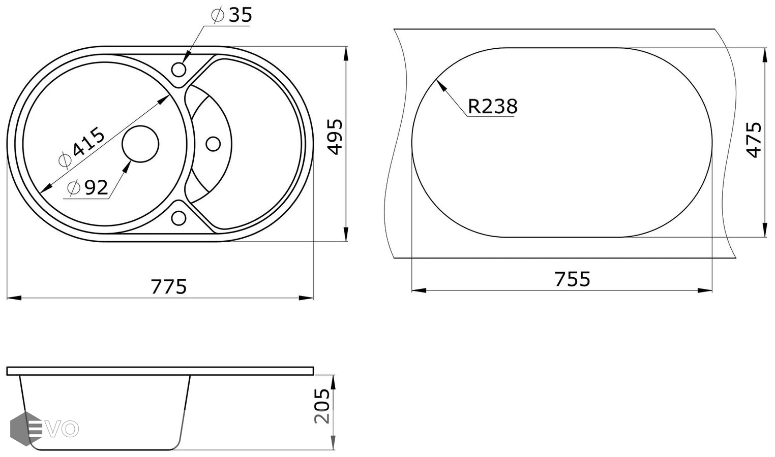 - Два намеченных отверстия под смеситель. Универсальная ориентация