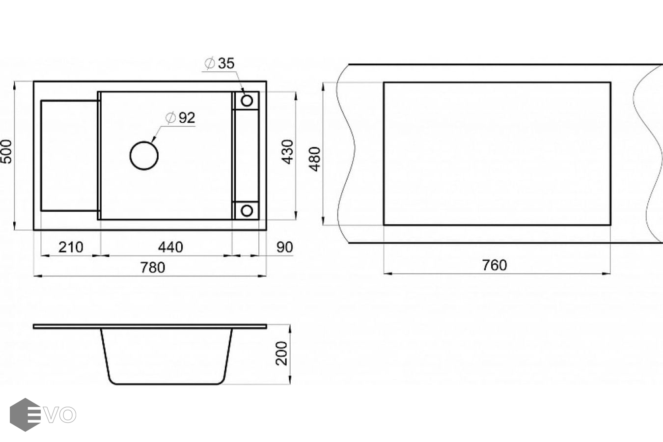 - Диаметр слива, мм 92