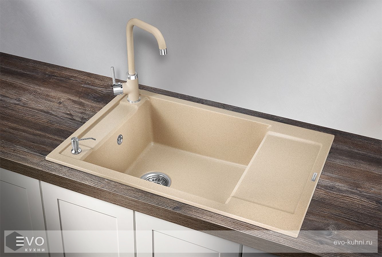 Представляем вам кухонную мойку с уникальным дизайнерским решением от российского производителя, выполненную из прочного и стильного кварца.