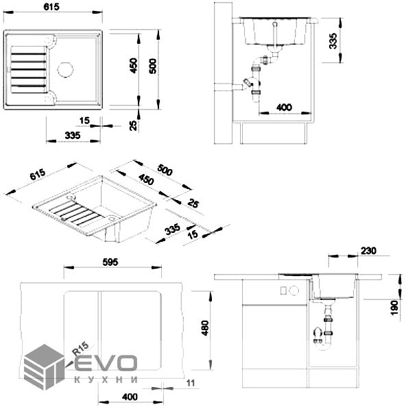 | Размер мойки | |