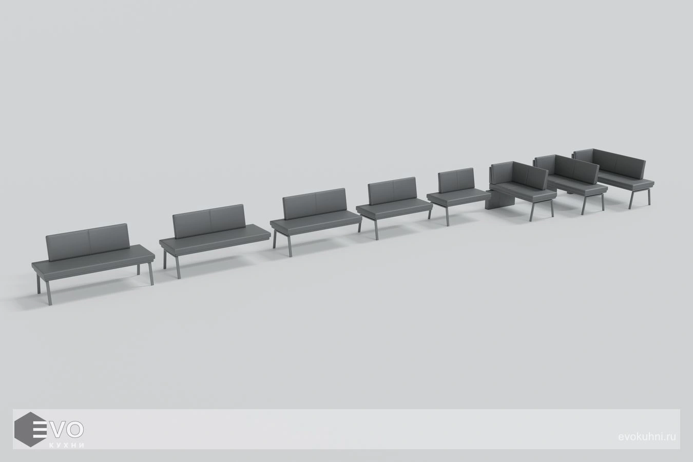 - геометрия сидения и спинки выполнены из многочисленных деталей, что визуально создаёт свободу и подчёркивает современность пространства;
