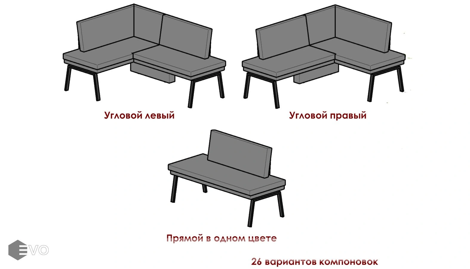- между сидением и опорами есть расстояние, за счёт этого модель выглядит легко и создаёт ощущение парящего в воздухе дивана;
