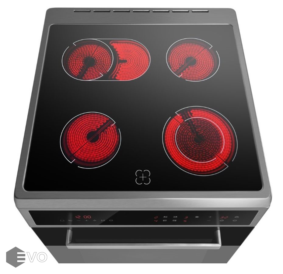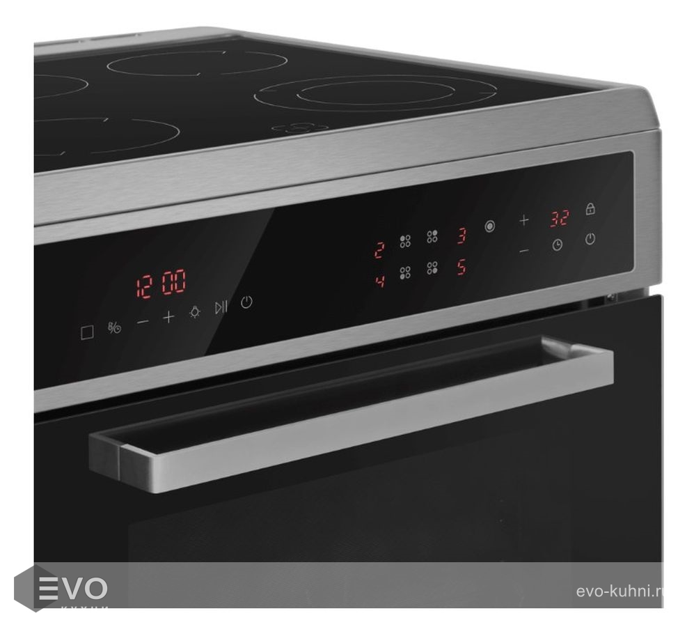Функции плиты : | Автоотключение Блокировка панели управления Индикатор остаточного тепла Контурная конфорка Овальная зона нарева |