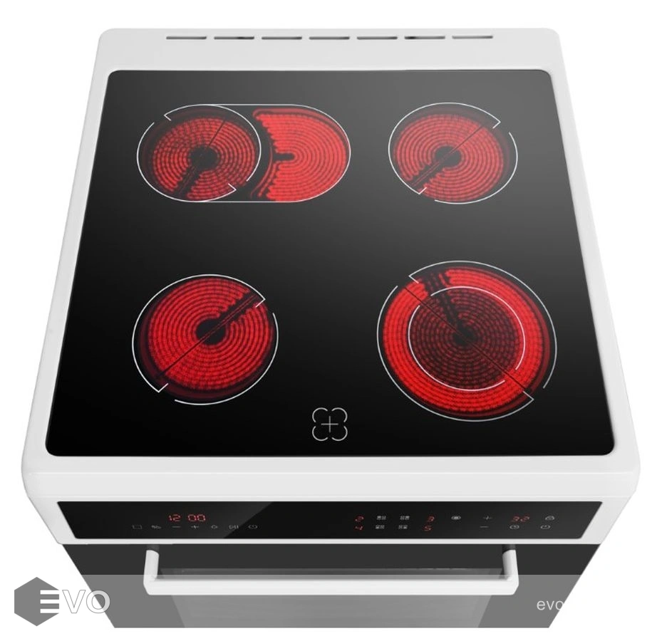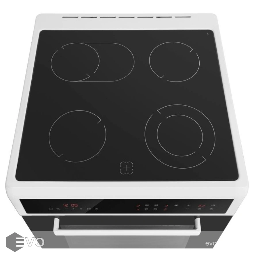 Функции плиты : Автоотключение Блокировка панели управления Индикатор остаточного тепла Контурная конфорка Овальная зона нарева