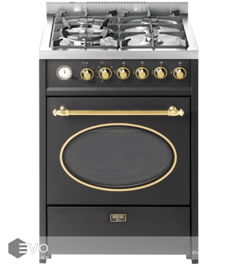 Отдельностоящая комбинированная плита Korting CKE 68041 CRN с электрической духовкой в изысканном ретро-дизайне. Устройство черного цвета с матовой полировкой имеет 8 режимов приготовления, включая гриль и конвекцию. Дверца шкафа имеет трехслойное остекление.