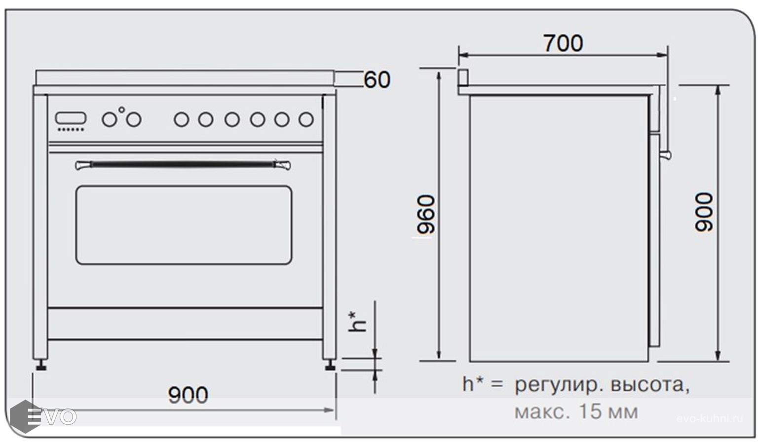 Объем духовки : от 60 л