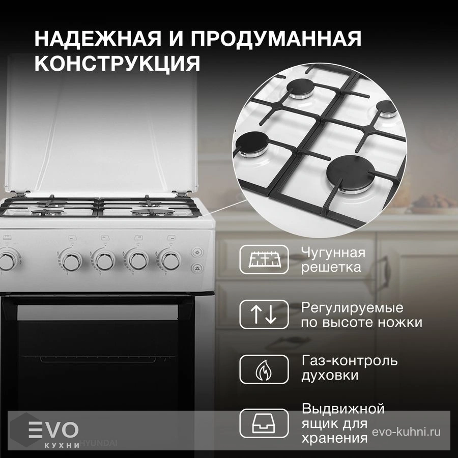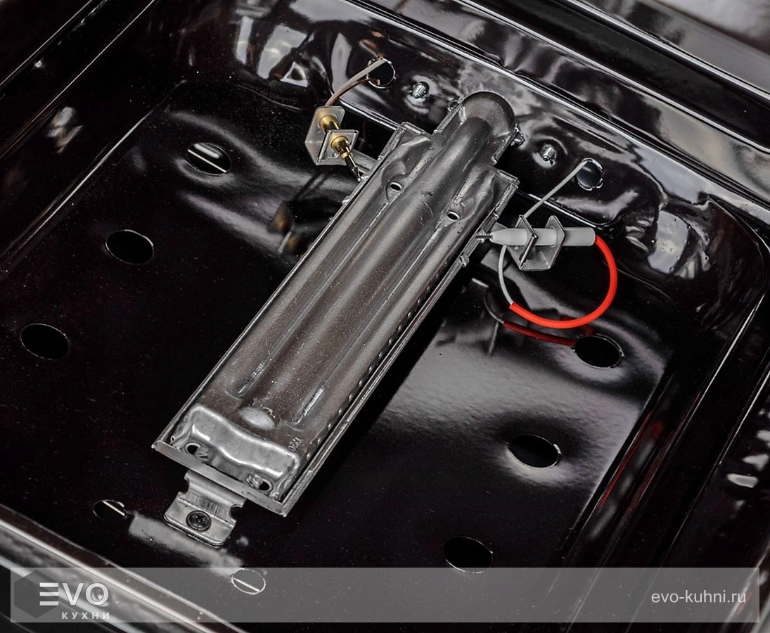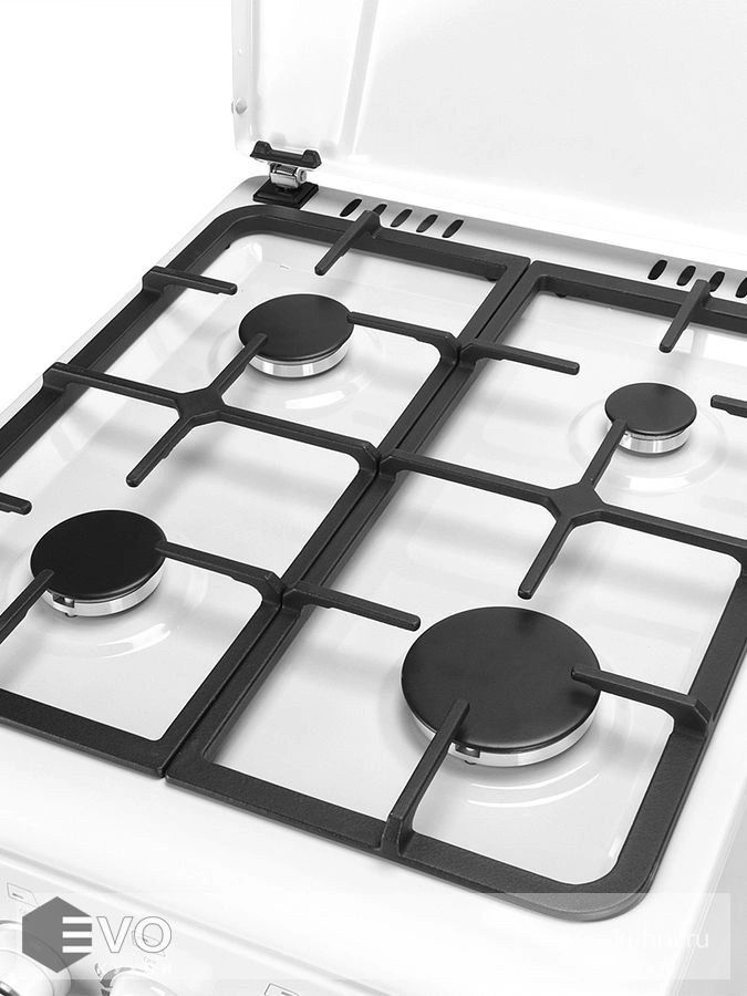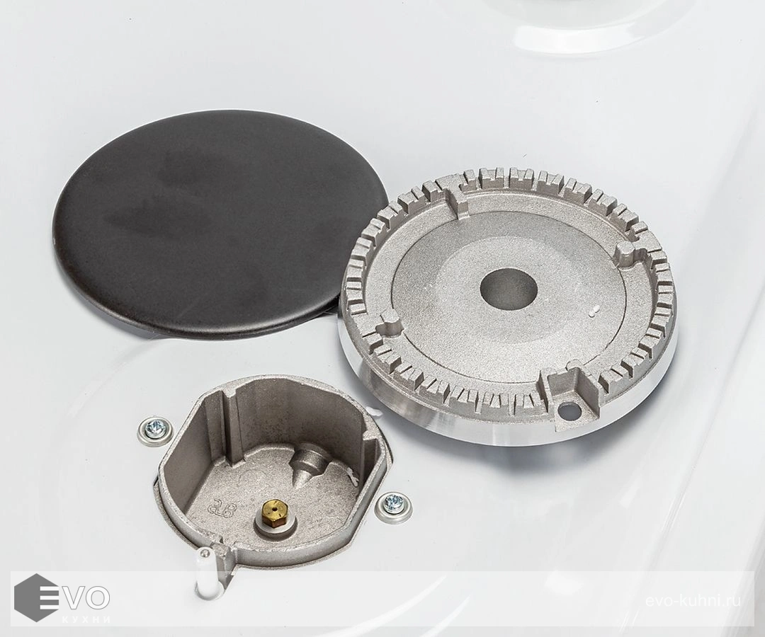 - Благодаря эстетичной чугунной решетке на плите можно оставлять кастрюли и сковородки, тем самым экономя свободное место на рабочей поверхности кухни