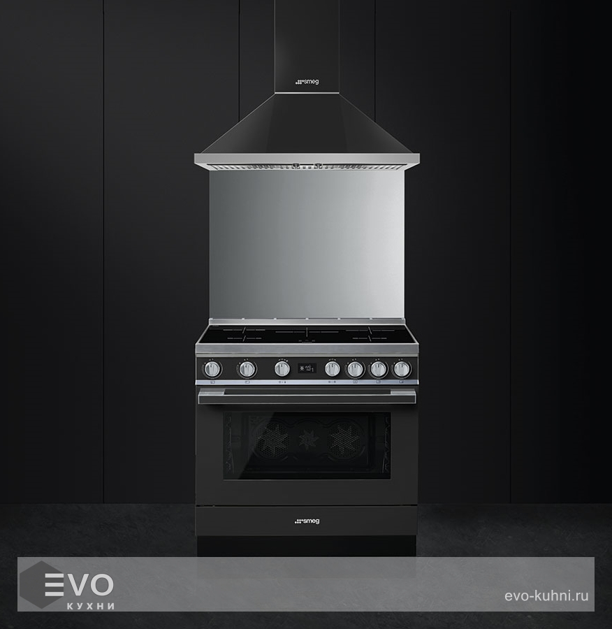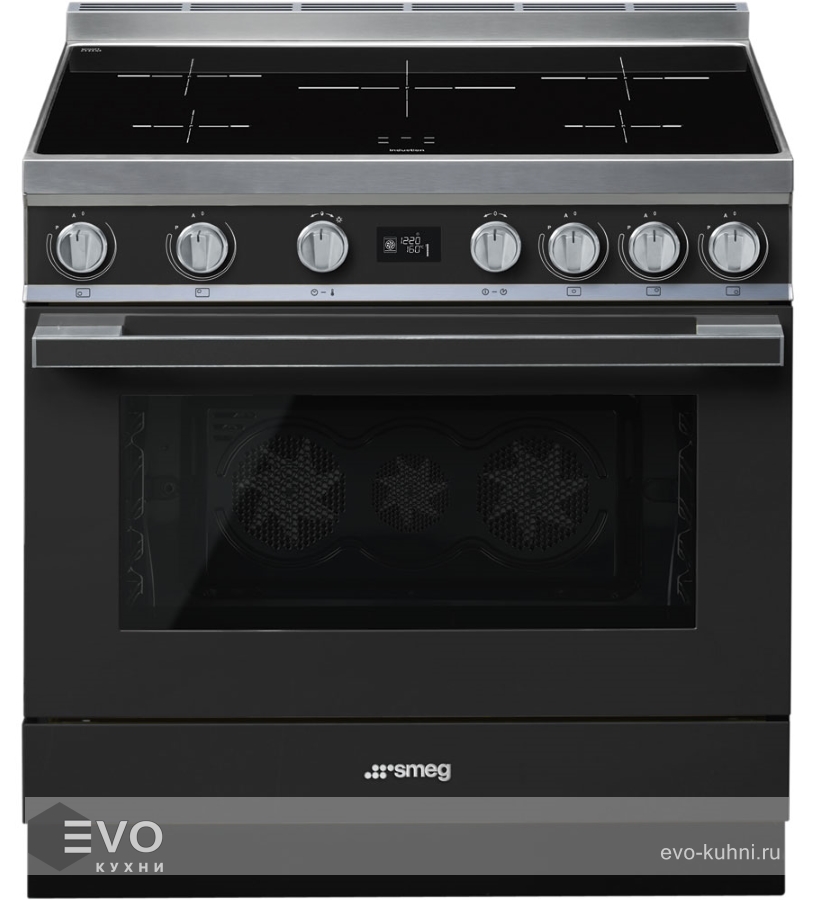 Плита кухонная Smeg CPF9IPAN – плита включает в себя индукционную варочную поверхность из стеклокерамики с 5-ю конфорками, функцией Booster для увеличения мощности и духовой шкаф объемом 115 литров с 5 уровнями приготовления, оснащена системой плавного закрывания Soft Close.