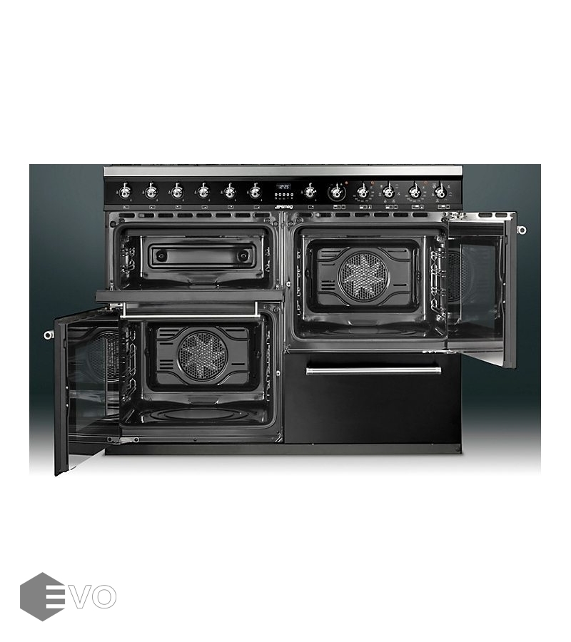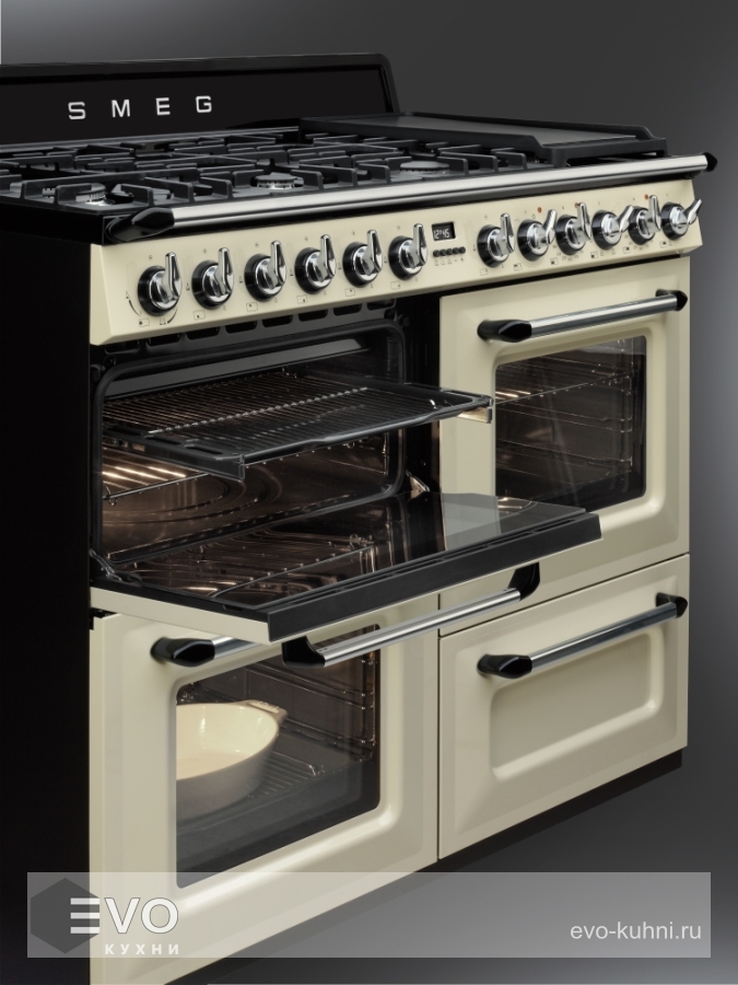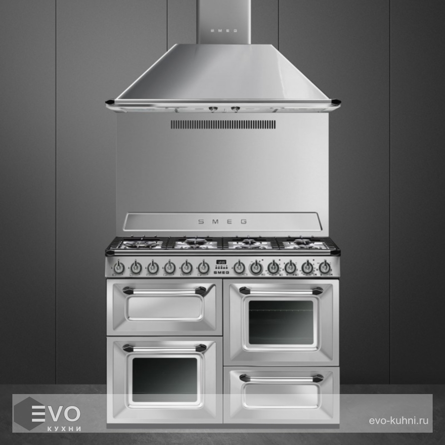 Варочный центр TR4110X-1 — центр предназначен для приготовления блюд средиземноморской кухни, различного жаркого, отбивных, колбас и бекона, а также выпечки тортов, пирогов, пиццы, хлеба, пирожных и печенья. Модель оснащена тремя духовыми шкафами и газовой варочной поверхностью с семью конфорками.