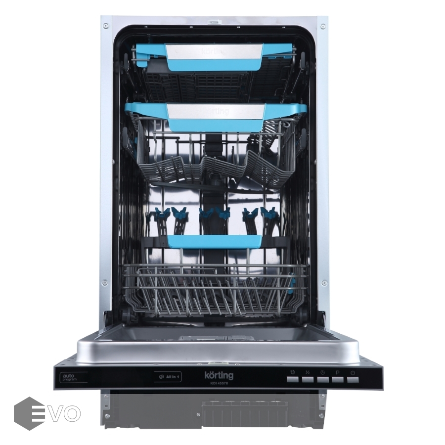 Посудомоечная машина Korting KDI 45570 — узкая модель с антимикробным покрытием и программой Baby Care. Рассчитана на 10 комплектов посуды и оснащена 8 режимами, среди которых автоматическая программа, которая подстраивается под условия каждой загрузки. Разбрызгиватели изогнутой формы S-Form направляют потоки воды во все уголки рабочей камеры, что способствует созданию оптимальных условий для мойки класса А.