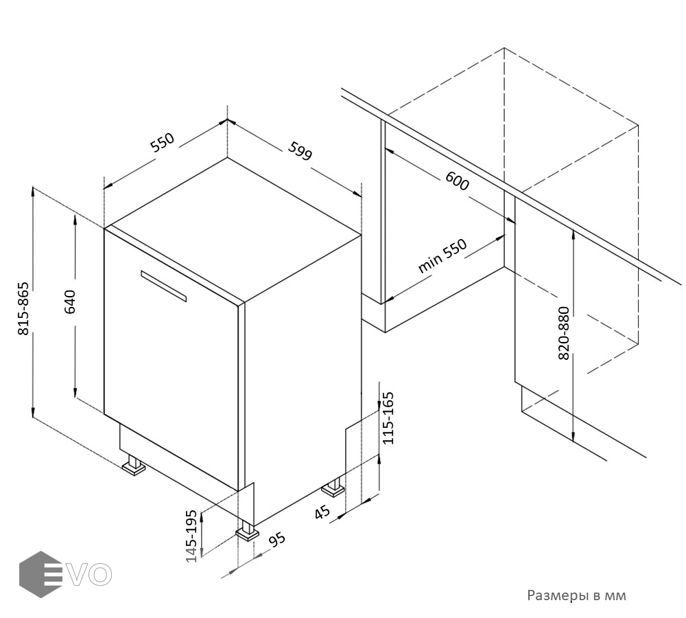 | Размеры встраивания (ВхШхГ), мм: | 820-880x600х580 |