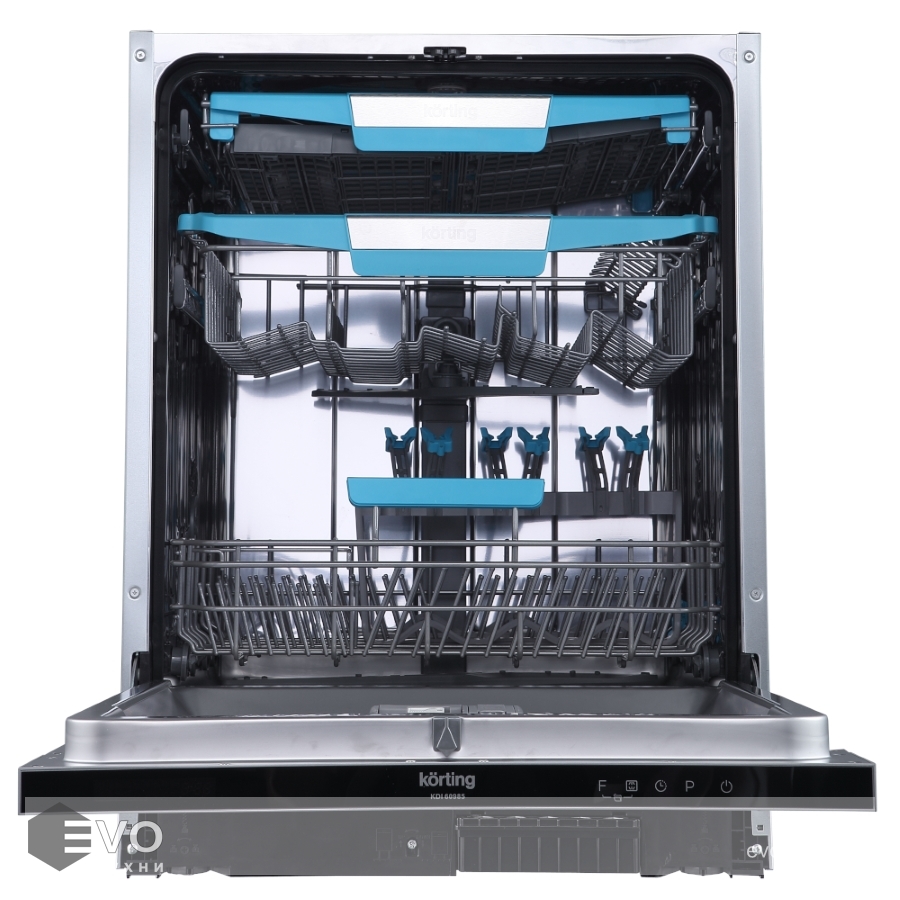 Посудомоечная машина Korting KDI 60985 дарит своим пользователям комфорт, удобство, ощущение надежности благодаря своему эстетическому внешнему виду. Ее габариты составляют 81.5 — 87.5 сантиметров в высоту, 59.8 в ширину и 55 в глубину, при таких показателях габариты ниши для встраивания имеют следующие значения: 82-88 сантиметров в высоту, 60 — в ширину и 58 — в глубину. Дизайн — стильный, современный с черной панелью управления. Такое устройство отлично впишется в интерьер любой кухни, будет сочетаться с имеющимся набором бытовой техники.